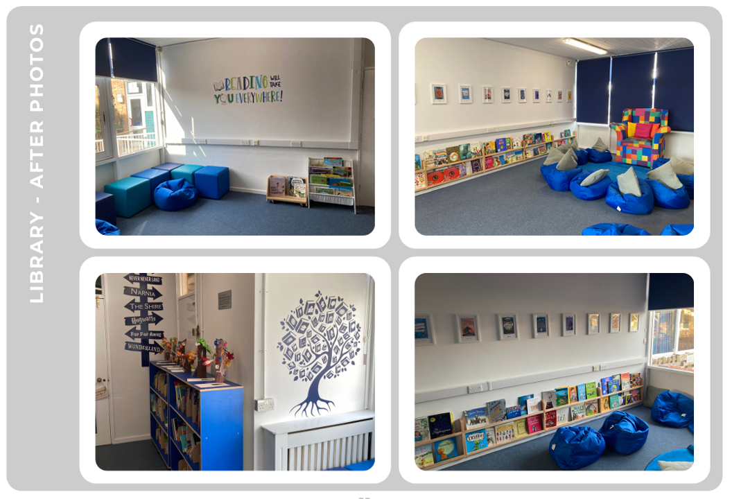 - To create a flexible/movable library area that can be used as a teaching space for a whole class as well as a place for individual pupils to come and borrow books